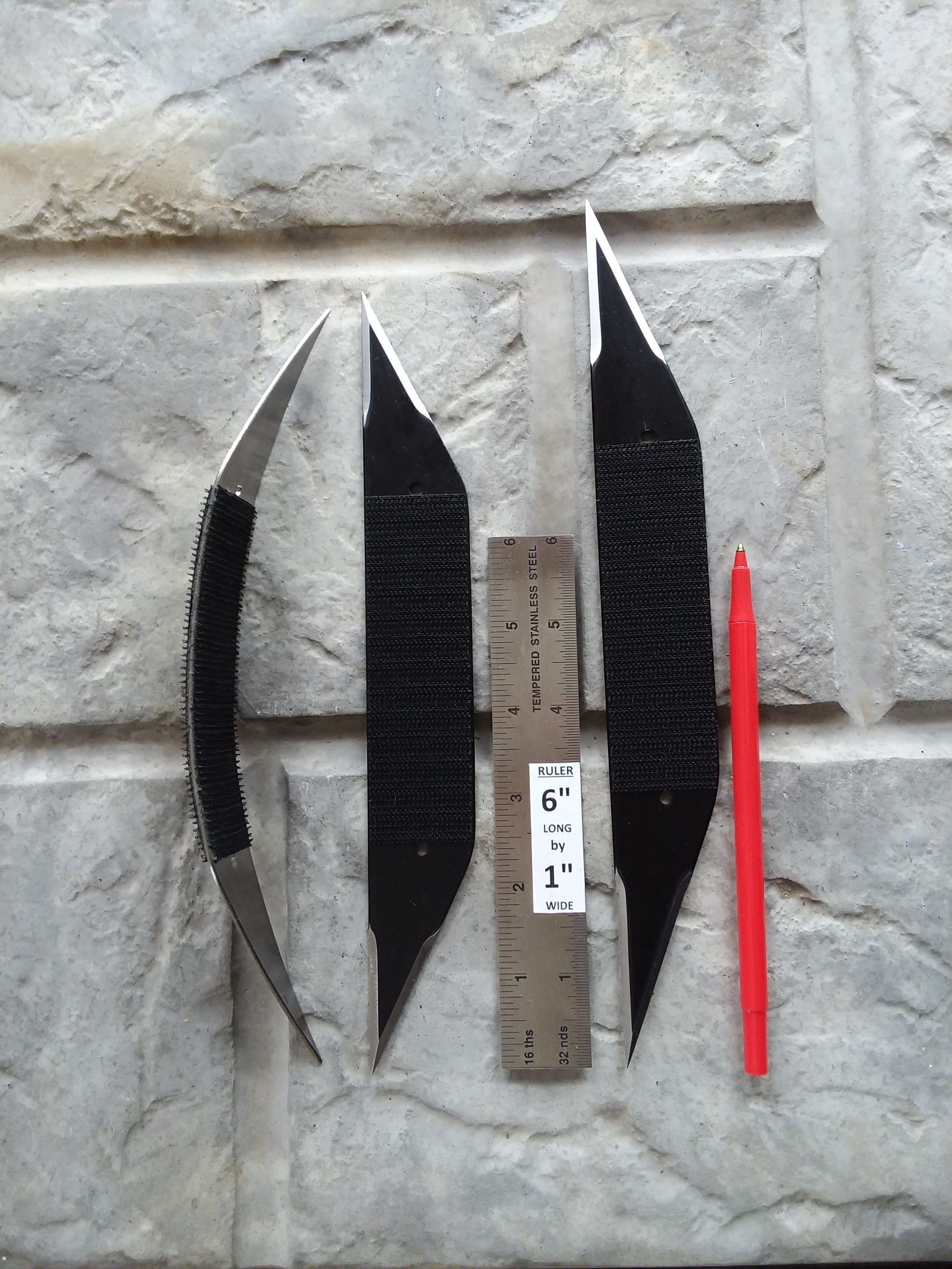 - Blade – Blades are sold “Double Edge Sharp” unless instructed otherwise. Due to the blade curvature and the orientation to the target – “Double-Edge Sharp” is highly recommended as it increases the options regarding angle of attack to the target. (Extreme Caution Advised: The quad razor-sharp edges, with needle nose penetrating points, makes this is an extremely dangerous weapon system for untrained personnel)